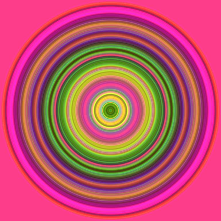 These paintings owe a debt to the Op artists of the 70's. The colors are derived by analyzing images of nature, people or in this case, stem cells.
