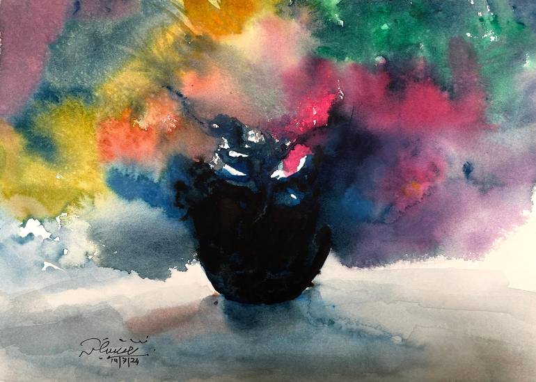 Playing with watercolor: technique is wet-into-wet. Its my lounge flower vase place it in sun feels like all flowers are merging with in. Watercolor is my favorite medium it's give me liberty to play with colors and water give it's own flowing impression which is unimaginable. At this process I'm fe...