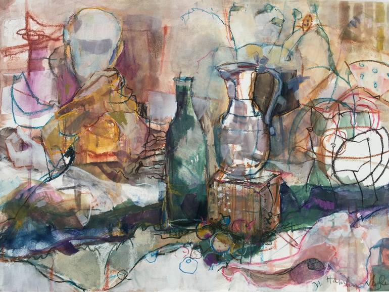 I am inspired by the most simple and the most unusual things and my studio is full of them! Working from a still life installation, I love to draw with pastels and charcoals and continue with acrylic wash. My choice of substrate is BFK Rives paper, 22"x30". The image is 18"x26", matted and framed...