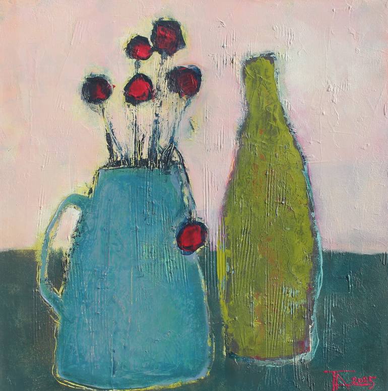 This minimalist still life is painted in an expressive manner with acrylic on canvas, the painting layer is covered with matte varnish. The sides of the painting are 3.5 cm wide and painted, so the work does not need a frame. The painting is laconic and will fit perfectly into any interior.