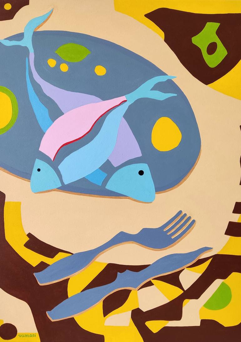 Still life painting in semi-abstract pop art style. The painting is a suitable addition to any interior. The color also continues on all sides of the canvas (3D effect), so there is no need to frame it.