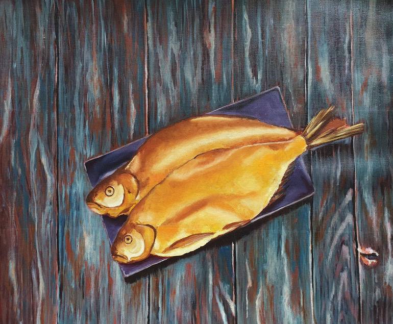 Still life with fish made special for lofts and industrial-style interiors. This painting, as a finishing touch, can make your room feel whole and complete. It is a thin sheet of canvas, not stretched over a stretcher. I advise you to put the picture in a photo frame, under the passe-partout. I will...