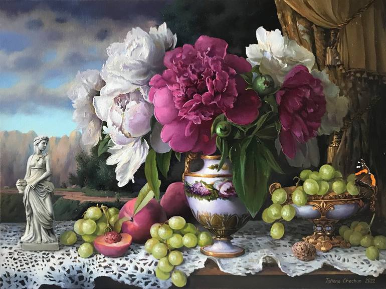 An original still life in the spirit of the old masters, but executed in the manner of modern realism. This is a complex multifaceted composition.