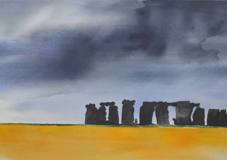Perhaps the world's most famous prehistoric monument, who could fail to be moved by the site of these iconic stones? Erected about 2500 BC their purpose is shrouded in mystery and they are surrounded by many bronze age burial mounds. This painting is deliberately simple in style, the stones standing...