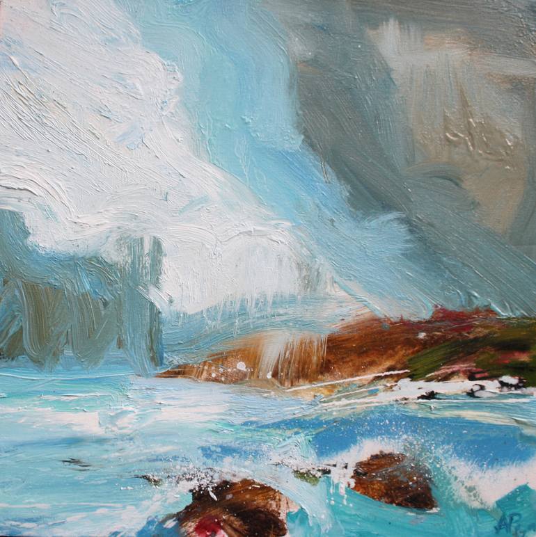 I am inspired by the sea and the rugged Cornish landscape. Stepper Point is close to my studio in Port Gaverne, North Cornwall. I found a sheltered spot out of the wind behind Stepper Point to catch the passing storm and frothy sea. I was particularly interested in the combination of the cerulean b...