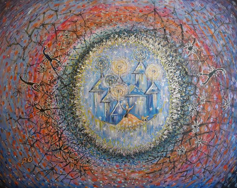 Original painting "Story of one life" Size: Height 22 x Width 28, Depth 0.6, Inches. Materials:Acrylic on Canvas, Acrylic Pens. Subject: Fantasy. Style: Impressionism, contemporary, modern.