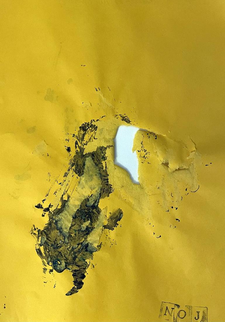 L'opera è una rappresentazione astratta di un'altra dimensione. Il foglio di carta giallo è sfondato e vuole rappresentare cosa c'è "dietro la facciata delle cose".