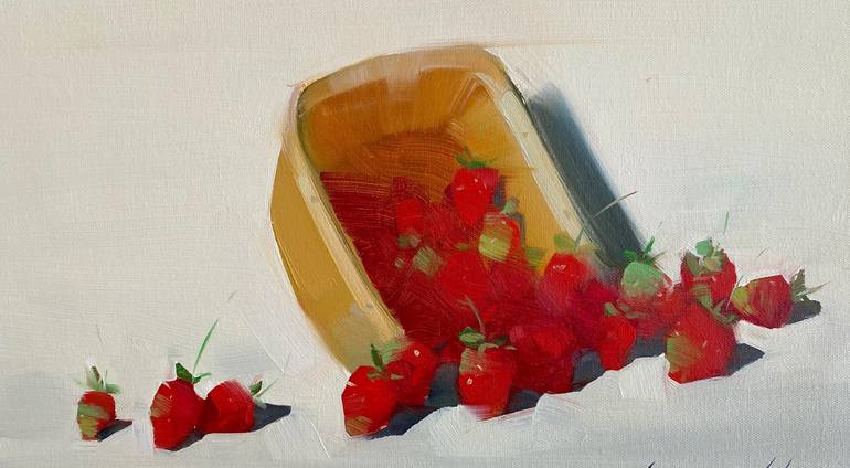 Artist: Vahe Yeremyan Work: Original Oil Painting, Handmade Artwork, One of a Kind Medium: Oil on Canvas Year: 2022 Style: Impressionism, Subject: Strawberries, Size: 9.5" x 17" x 0.8'' inch, 24x43x2 cm, Unframed, Stretched on Wooden Bar, Gallery Wrapped, Ready to Hang. Yeremyan is an Americ...