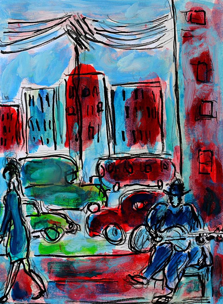 Dans cette peinture, j'ai cherché à capturer l'effervescence urbaine avec une touche de mystère. Utilisant huile et encre de Chine, j'explore l'impressionnisme pour exprimer le dynamisme et la solitude des artistes de rue. Les couleurs vives contrastent avec les silhouettes sombres, évoquant la beau...