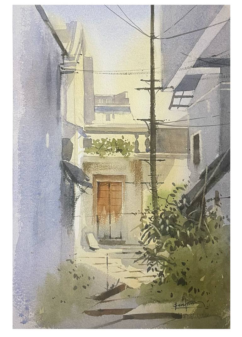 My watercolor painting of a small street captures the essence of this quaint scene with delicate, flowing colors. It likely showcases the charm and character of the street, offering viewers a glimpse into its unique atmosphere and ambiance. The medium of watercolor allows for a soft and dreamy quali...