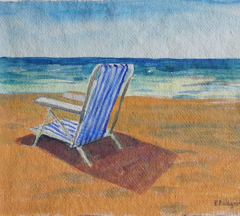 Sitting on the beach one day on Cape Cod, I sketched and painted the chair in front of me, bathed in light with a cast shadow. The composition is comprised of five basic shapes, (sky, water, sand, chair, shadow). Although I concentrate on formal elements of painting, a psychological one comes throug...