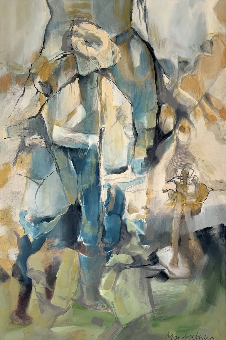 This painting is about strenght. Taking someone out of a difficult situation. If you look at it closely, you see that is the case here. It maybe look abstract at first sight, but there truly is a visual storey in it. Hope you are with me on this. Acrylic on cotton/polyester. Comes in a silvery shini...