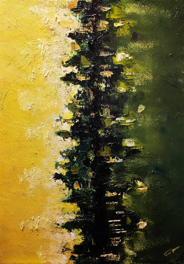 This is a picture of the harmonious struggle of nature. Everything in nature is beautiful, even the struggle. I tried to express my thoughts through light and dark and green color.