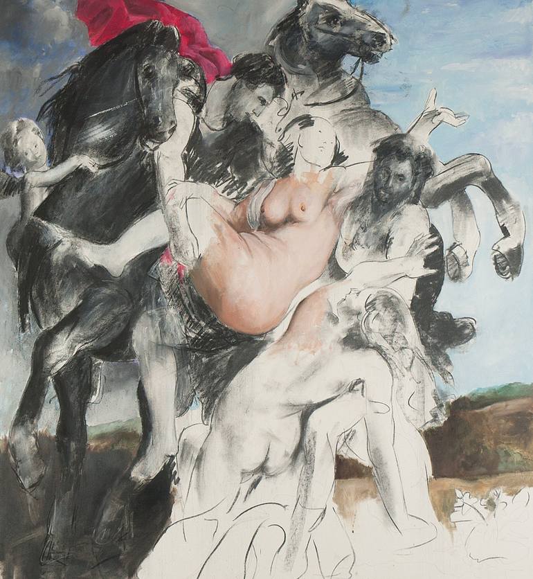The painting is ready to hang with the possibility of being framed. Starting from the famous painting by Rubens, I wanted to interpret the myth of the Leucippidi by inserting drawing elements with pictorial elements, thus giving a modern and "unfinished" aspect to Rubens' masterpiece.