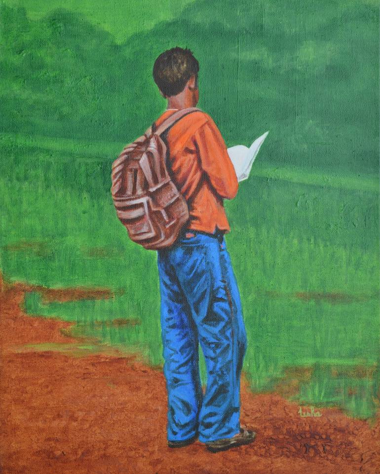 Studious is an acrylic painting on gallery wrap canvas, with sides painted in continuation. This is one of a series of paintings I did called 'Body Language'.