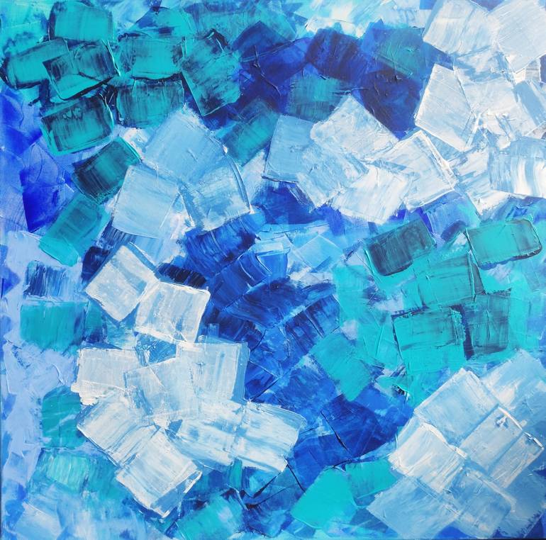 Dive into the depths of human sublimation with 'Sublimations. Etude 2', a mesmerizing abstract artwork that distills the essence of the ocean's profound mysteries. This captivating piece, rendered in a palette of calming blue, crisp white, and shimmering green and turquoise hues, presents a kaleidos...
