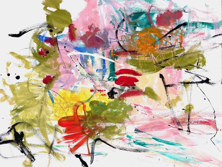 "Such a Beautiful Day" is a real statement piece of art. Colorful, vibrant, dynamic - full of positive energy. Let us enjoy every day as if it is the last one!!! The main colors are green, pink, red, yellow, black and white. The painting is signed on the back. The title and date of creation are al...