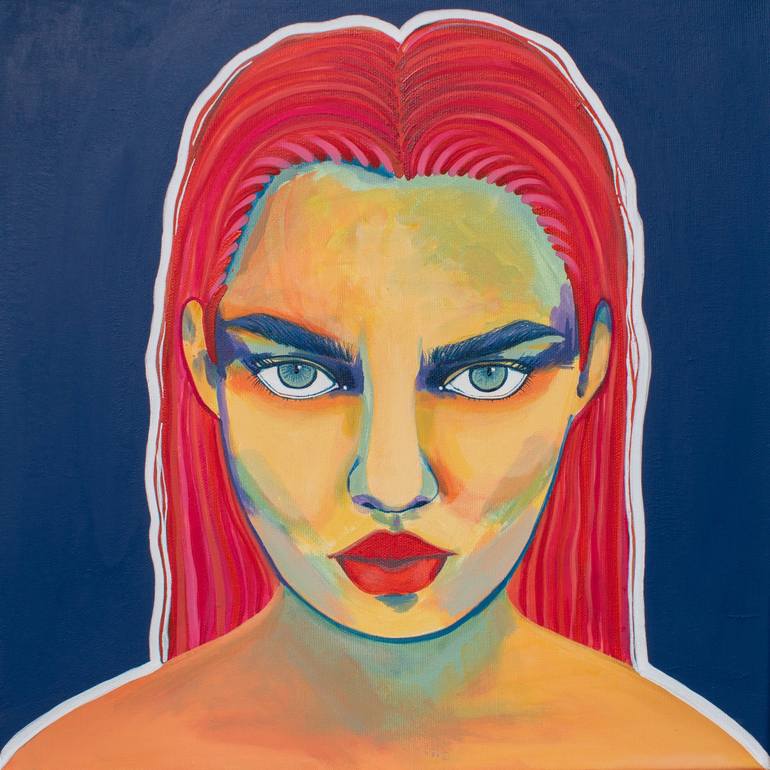 Catalina Beres (b. 1992, Romania) is a visual artist who lives and works in Bucharest, Romania. She grew up in Eastern Europe and studied at George Enescu University of Visual Arts and Design in Iasi, Romania, graduating in 2014. Before settling in Paris for a couple of years, she worked in different locations within Europe and ran a design company for several years. Since then, she has shown her paintings in New York, Miami and Paris. Beres’ colour palette includes bright, energetic combinations that form stylised representations. Some are conventional portraits of women and others bring together facial features with pattern and expressive shapes to create more abstract compositions. The resulting works are colourful and graphic, putting across personality and attitude, recognising unfortunate shared experiences and creating a protest against them.