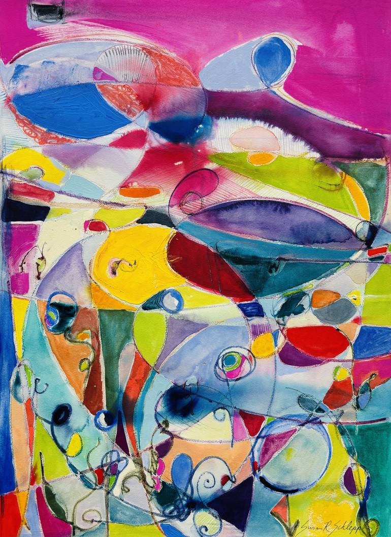 Background: Susan R. Schlepp is a dynamic expressionist artist from Sammamish, WA, born and raised in Pittsburgh, PA. She has a passion for painting and printmaking, inspired from the natural world and her inner landscape. Her art flows instinctively with each piece having a unique story to tell, uplifting the viewer and enhancing the space it resides in. Motivation: Susan's motivation is the sheer joy & freedom found in artistic expression paired with a heartfelt desire to give back to charitable organizations through donations of art to events. Susan gifts at least 10% of sales to The Nature Conservancy because our natural world deserves to be protected. Healing: In 2013, Susan began pursuing art in response to suffering from Seasonal Affective Disorder (SAD). Playing with color was deeply healing and allowed her to rise above gloomy skies and drizzly days. She discovered that creating art offers a tangible way to express and process a multitude of thoughts and emotions. She now harnesses the full spectrum of color in all its hues, shades, tints and tones to lift the soul and help navigate the ups and downs of life. Endeavors: Spring 2025, Susan will continue her art education at Bellevue College. Winter 2025, she expanded her skillset in Honolulu & San Diego with experimental techniques & formal classes. Spring 2024, she participated in a week-long online workshop to delve deeper into design, value & color. Summer 2023, Susan was invited to Santa Catarina in Puglia, Italy to participate in a special art project where she created & photographed her temporary art installations in the Porto Selvaggio Nature Preserve. While there, she made natural pigment paint from the rock sediment, produced prints from native botanicals and painted daily. Winter 2023, Susan was an artist-in-residence at the Scuola Internazionale di Grafica in Venice, Italy for six weeks where she painted daily and learned many printmaking techniques, all while soaking in the art, architecture & culture of this magnificent "floating" city. Giving Back: Susan has volunteered at Seattle's Union Gospel Mission Art Therapy program for the unsheltered and curated the pop-up art show at the monthly Pioneer Square Art Walk. She has led art classes with youth at the Denny Detention Center and witnessed the power of art to positively transform states of mind. She occasionally teaches workshops and loves to encourage people to unlock their inner artist and reap the many benefits.