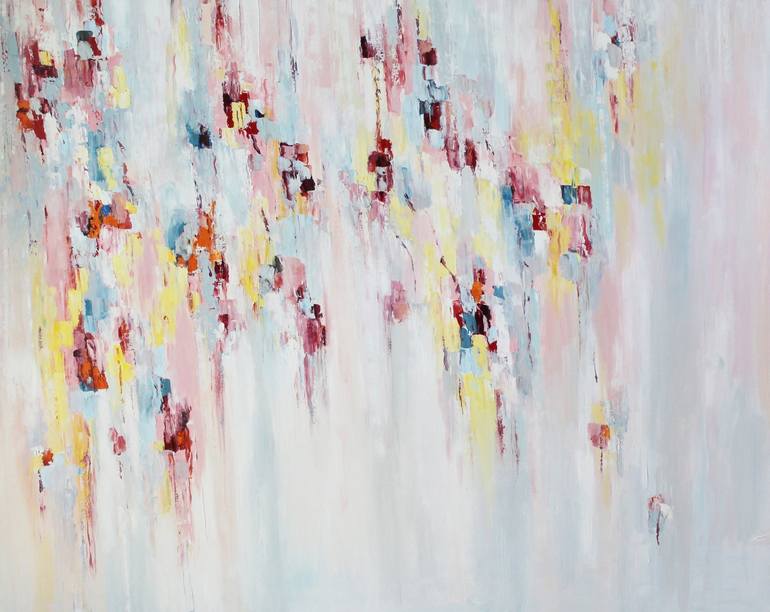 "Summer Light" is an original abstract oil painting, a vibrant piece evoking the warmth of summer. Created with layers of oil paint on a large, deep edge canvas, the artwork is ready to bring a bright and airy feeling to your home. The white edges add a clean, contemporary touch. This painting feat...