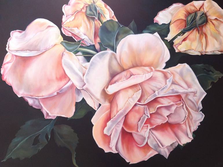 I love roses, so this the primary inspiration for this painting, I love the combination of roses in full bloom and roses wilting. The beautiful colours and shapes as their petals curl and change colours. I want the viewer to have a sense of looking at real roses that are in various stages of aging, ...