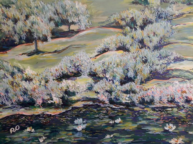 Original painting "Summer day" Size: Height 18 x Width 24, Depth 0.6, Inches. Materials:Acrylic on Canvas, Acrylic Pens. Subject: Landscape. Style: Impressionism, contemporary, modern.