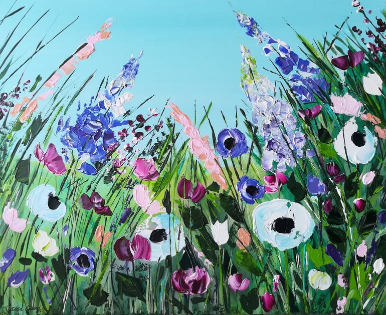 The acrylic board, made with knives . Glossy protective varnish. Summertime fantasy: himalayan poppies, lupines, mellowness of grass, splashes of meadow flowers. Infinitely diverse in color and shape, the flowers fascinate the artist's eyes. Sometimes they are delicate and fragile, sometimes they a...