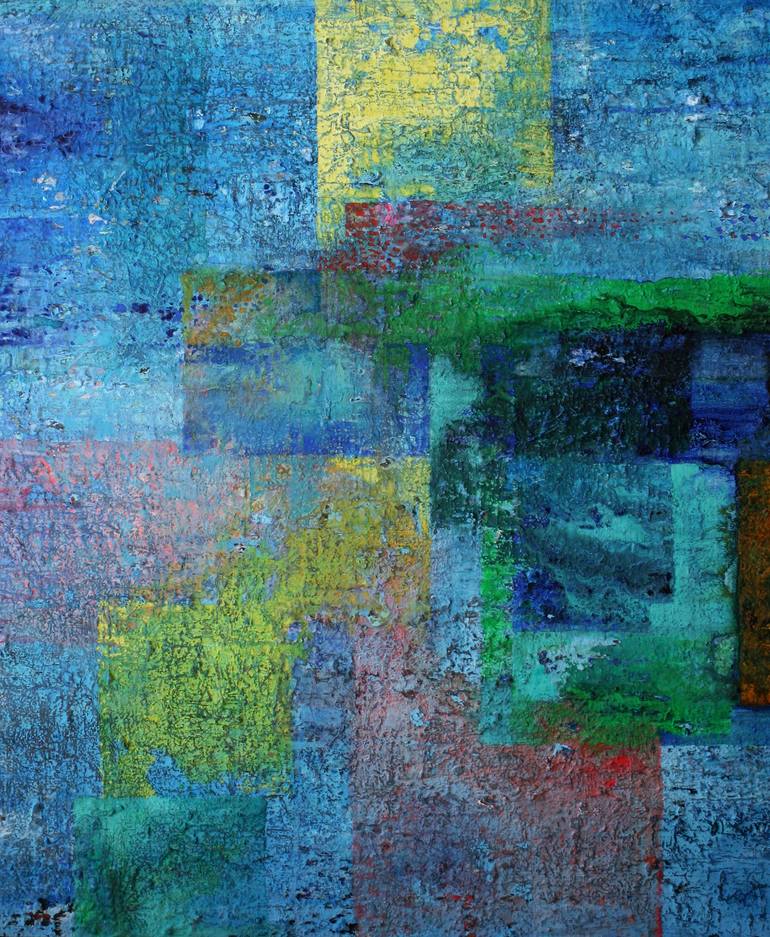 The lake is calm and still, the air is perfumed and animated by the dragonflies, the summer sun is kissing your shoulders. This painting is a summer meditation, for a beautiful connection to the divine. Many layers were built over months to create this wonderful texture, then layers of colour were ...