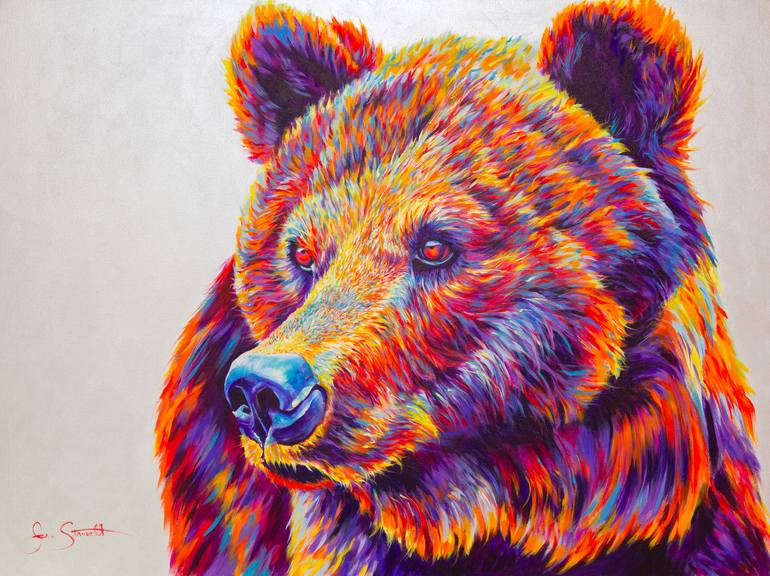 There is so much joy radiating from this bear. She brightens every room with sunshine and you can't help but smile when your in her presence. I woke every morning and painted as the sun rose till this painting was complete and nick named her my sunshine bear.