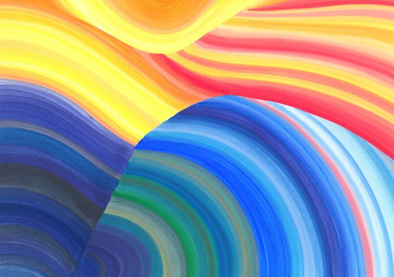 Sun and Sea Wave. Abstract landscape. Meditative painting is filled with the energy of the sun and the sea. The painting was done with watercolors on watercolor paper 300 g. This artwork is sold unframed. Materials used: watercolor paper, watercolor paints, brush Size: 44.5 x 31.5 cm Author's sign...