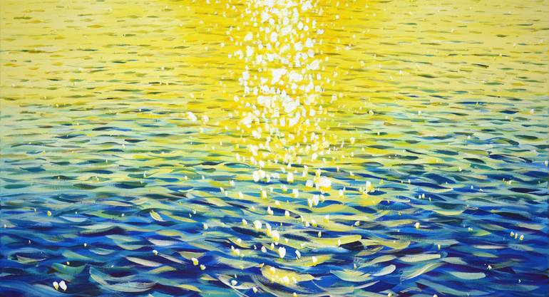 In this painting, I sought to capture the mesmerizing interplay of light on water at the golden hour. Using acrylics, I blended techniques from impressionism and realism, creating a dance of colors that vibrates with life. Each stroke of blue and gold reflects not only the sun's rays but also the de...