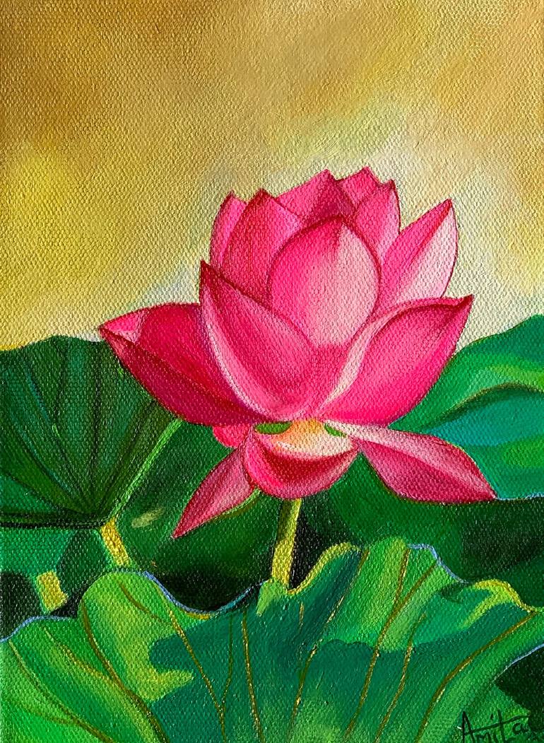Amita’s passion lies in capturing the ethereal beauty of nature, particularly the graceful elegance of water lilies. She finds solace in capturing the captivating essence of water lilies and lotuses. These delicate blossoms, with their serene symbolism of purity and spiritual awakening, serve as Amita's muse. While water lilies and lotuses are her primary subjects, her artistic repertoire extends beyond these mesmerizing blossoms. With a zest for exploration and an open mind, Amita fearlessly delves into other landscapes and subjects, occasionally venturing into painting sunflowers and experimenting with diverse styles and ideas. Embracing the ethos of experimentation, Amita thrives on pushing boundaries, embarking on abstract compositions that blur the lines between reality and imagination. She embraces the freedom of expression, allowing her intuition to guide each stroke of the brush. This intuitive approach infuses her artworks with a sense of spontaneity and raw emotion, inviting viewers to immerse themselves in a vivid world of imagination and interpretation. Her transformation from software engineer to intuitional artist is a testament to her tenacity and unwavering belief in the power of following one's passions. Through her art, Amita invites you to witness the convergence of these worlds, where logic and intuition dance together to create masterpieces that stir the soul and awaken the senses. Her paintings have found happy homes in the UK, USA, Australia, Sweden, France, Dubai, Germany and India and she hopes to add more to her list. If you have any questions or suggestions, please do not hesitate to get in touch.