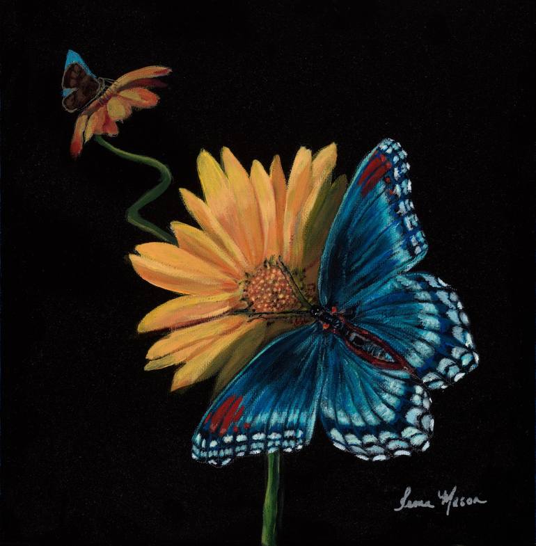 Acrylic painting on a canvas board of a Butterfly landing on a Sunflower in Full Bloom. Reminds me a of beautiful Spring Day in the country when I stopped to enjoy some flowers in a field that were being frequented by Butterflies. ABOUT IRMA MASON Irma Mason Irma Mason is a native of the Midwest b...