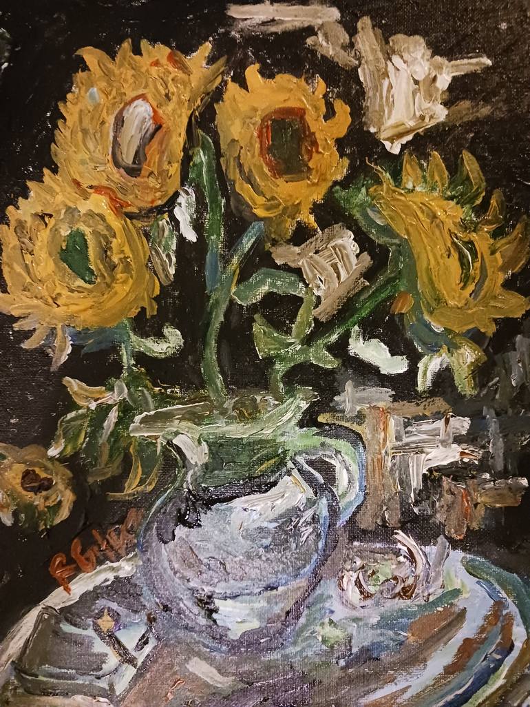 Van Gogh inspired this painting, I shan't have to say that. I feel strongly, that I have to paint a much improved version, derived, from this one. But keep in mind, that this is the first edition. -----------------
