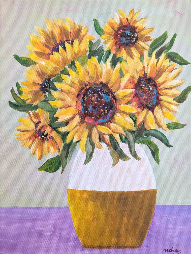 I love painting sunflowers because they are so bright and happy. This is an original painting on stretched canvas, sides are painted and it is ready to hang.