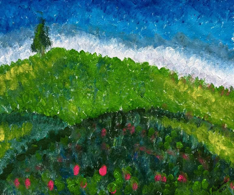 A sense of flow and movement, with dots blending beautifully to express the tranquil yet dynamic nature of hills. Original art piece by Aqsa Raja a well known artist from Pakistan. “The pictures give no justice to the painting as how much appealing it is visually.” Painting is varnished which will...