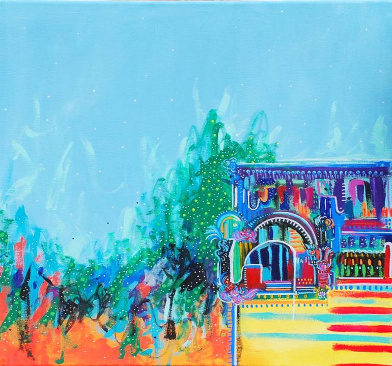 An abstract interpretation of a traditional door way in Ceylon. Aasiri work is a fantastic addition to any collector who is looking for colourful yet fine art paintings with deep meaning.As her work are all one of a kind unique pieces each art work sold by the artist will be the truly original art w...