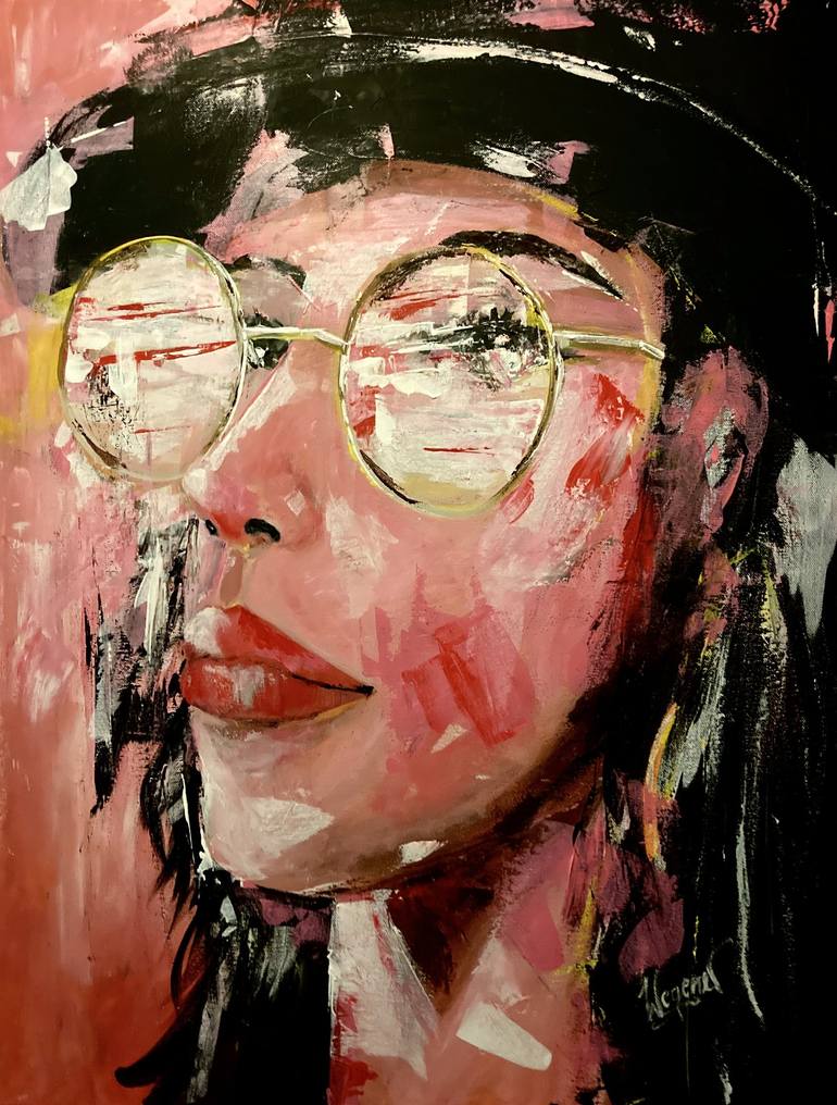 To create a cool, colourful artwork was my intention. I see a powerful, smart woman and i hope you love it, like I do.