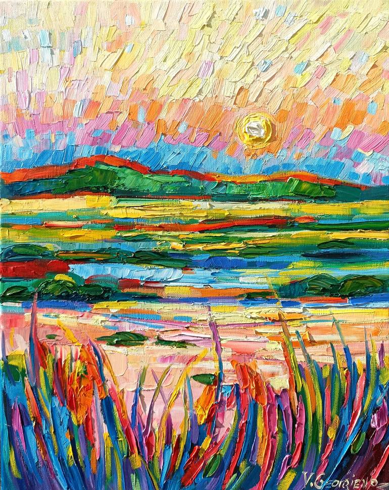 Vanya Georgieva creates scenic landscape oil paintings in bright colors. Enthusiastic about the ability of art to convey beauty and feelings, her artwork can help you create a sensational and energizing atmosphere. Founder of the artistic movement "RA" (Rainbow Art) which is based on a technique called by Vanya "the touch of the butterfly" with clean or almost clean colors that mix lightly with each other only on the canvas, creating a powerful network of ghostly energy , which has also been used in chromotherapy for years. The technique that Vanya uses is the result of years of practice, drive and experimentation! Oil on canvas on a dark acrylic background with a base, so you can bring out the colors even more ... They often think that Vanya uses special almost phosphorescent colors, because the effect is amazing. But the truth is that it is the use of color itself, the lightness of the brush strokes, the way of putting the color on the canvas that is almost a caress ... dexterity and procedure acquired by Vanya after 15 years in the studio. Her style Is Unique with exact step by step . The passion for art is gratified with great success by critics and the public in her solo and group exhibitions to convey to visitors and especially to her children , the enthusiasm and love for ART as a transmission of beauty and universal feelings!