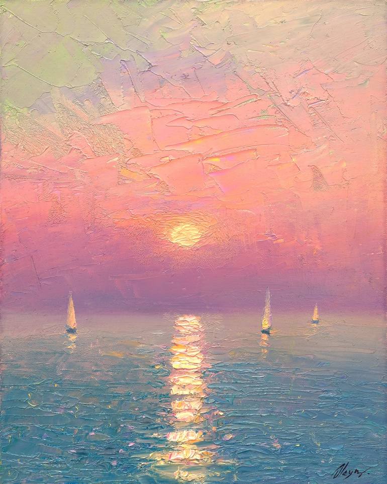In a world overwhelmed by noise, speed, and constant pressure, I paint the sea not as a spectacle, but as a space of restoration. My work is a pause — a place where the human psyche can slow down, breathe, and regain balance. I believe that silence is not emptiness, but a form of resistance to the overload of the modern world. My paintings are created not to excite, but to restore. Dmitry Oleyn's painting is the embodiment of a high professional level, original technique and emotional fantasy. The artist uses only natural materials, museum linen canvas and oil paints of the highest quality to create the work. The purchase of this work will not only become a decoration for your home, but also a good investment. Actively gaining popularity, Dmitry Oleyn is recognized not only in his country, which is confirmed by many awards, but also in Europe, where personal exhibitions, fairs and auctions are held.