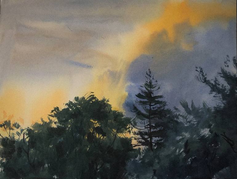 The landscape "Sunset. After the Rain" was painted in watercolor technique under impression of scenery after the storm in Singapore, June, 2020.