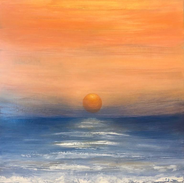 "Sunset, D Street" was inspired by the beautiful colors of our local sunsets across the Pacific Ocean. Living close to the beach, I enjoy creating ocean-based pieces to share with those near and far.