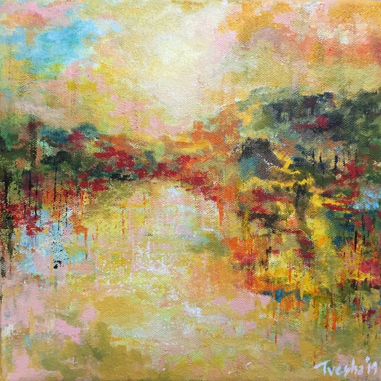 'Sunset I' is an acrylic on canvas painting created using archival and high quality materials. The canvas is gallery wrapped and the painting continues onto the sides. I have also applied a layer of varnish on the artwork to protect it from dust and UV rays.