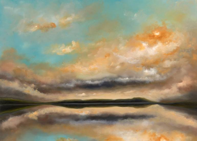 A quiet moment across Lake Windermere as the evening slowly turns to dusk. An oil painting on oil paper with border remaining to ease with framing.