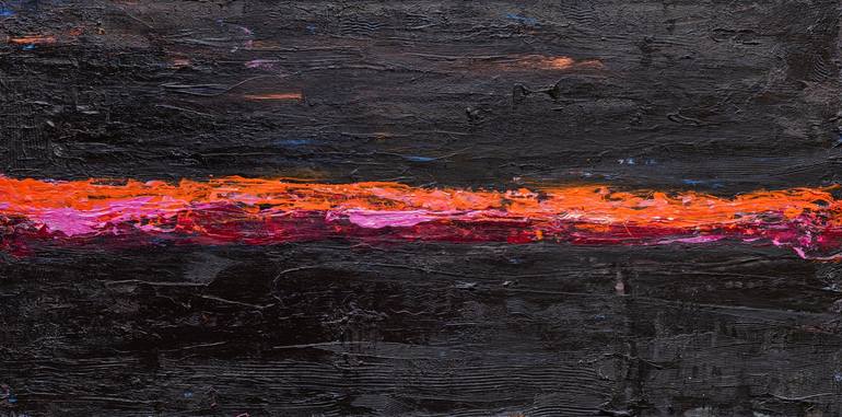 Vivid waves of orange and pink amidst a sea of darkness. A meditative piece for the soulful collector.