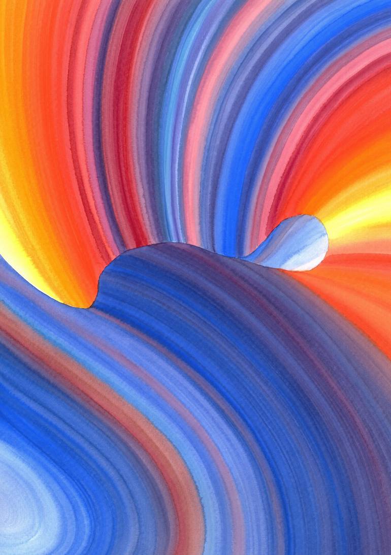 Sunset and Sea Wave. Abstract meditative watercolor. The rays of the setting sun are reflected in the sea wave. The painting was done with watercolors on watercolor paper 300 g. Author's watercolor technique. This artwork is sold unframed. Materials used: watercolor paper, watercolor paints, brus...