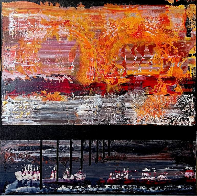 My wife and I sat on the beach and watched the sunset after having a perfect day together. This painting retains the energy and emotion that was felt on that day. My intent is to spread that feeling we had to everyone that gazes upon the painting.