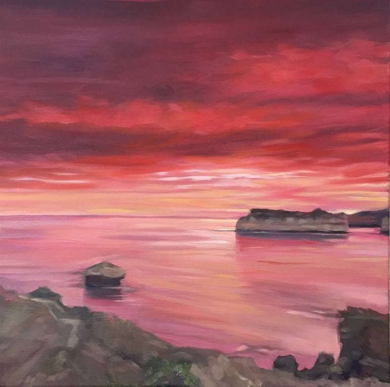 I was inspired to paint this work after seeing wonderful sunset views of Childers Cove. I wanted to capture the spectacular light and rich colours while conveying a feeling of mystery and majesty. I painted this on a standard width canvas of 1.5", the edges are painted dark grey so it can be display...