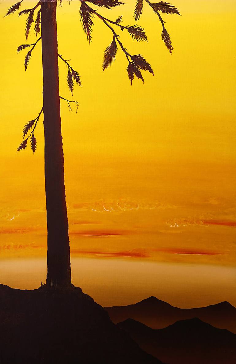 Sunset tree...This conceptual Painting artwork has been created on Canvas-stretching- using acrylic colors, in combination with airbrush paint, brushes and pencil. Available as a Limited-Edition of 25 Giclee fine art Metal Prints H 85 x W 55cm $ 1000 -plus shipping All limited-edition Metal prints ...