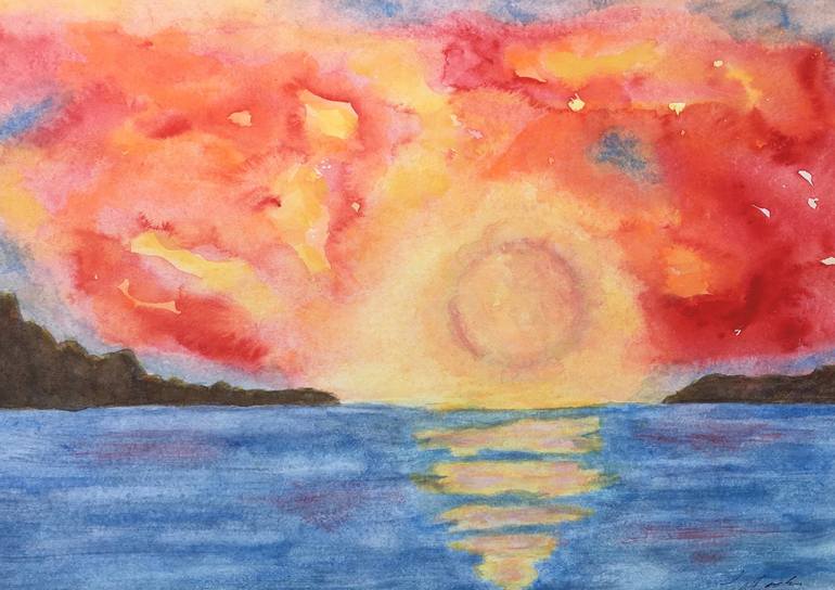 This Sunset was seen from my terrace. The intense colors of joy, passion and the reflection on calm blue sea create a moment to be cherished. I hope the viewer experiences the same harmony.